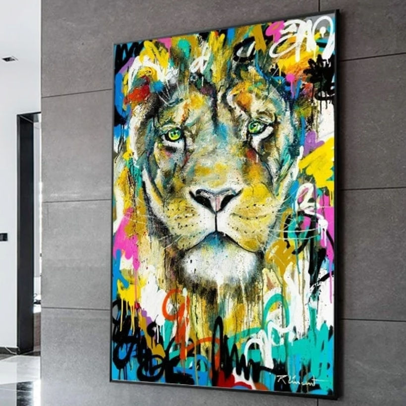 QUADRO DECORATIVO LEÃO COLORIDO COD 03